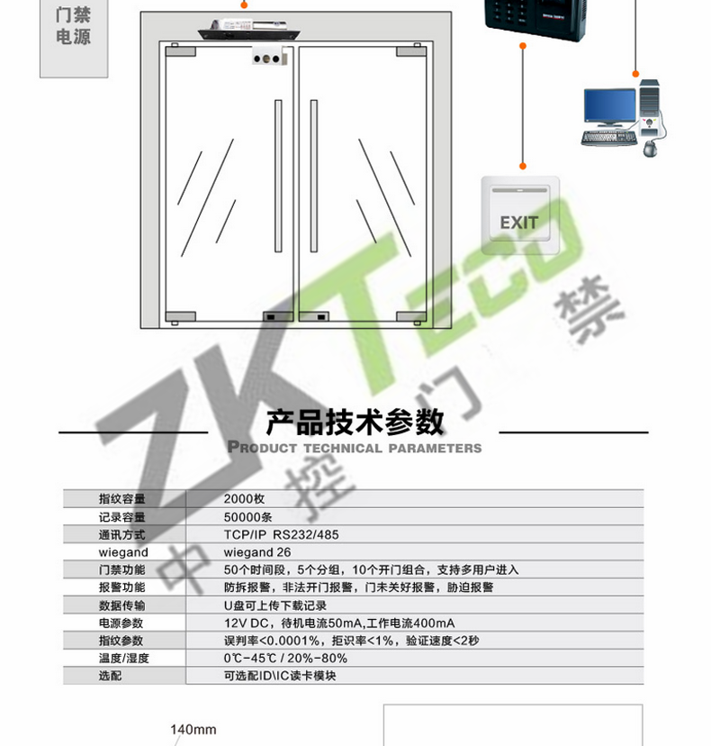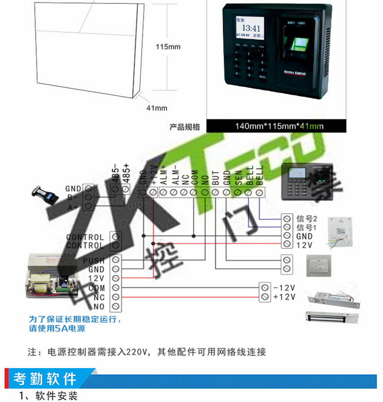 · 軟件 : 支持實(shí)時(shí)監(jiān)測(cè)門禁軟件,指紋讀卡器軟件和考勤軟件等