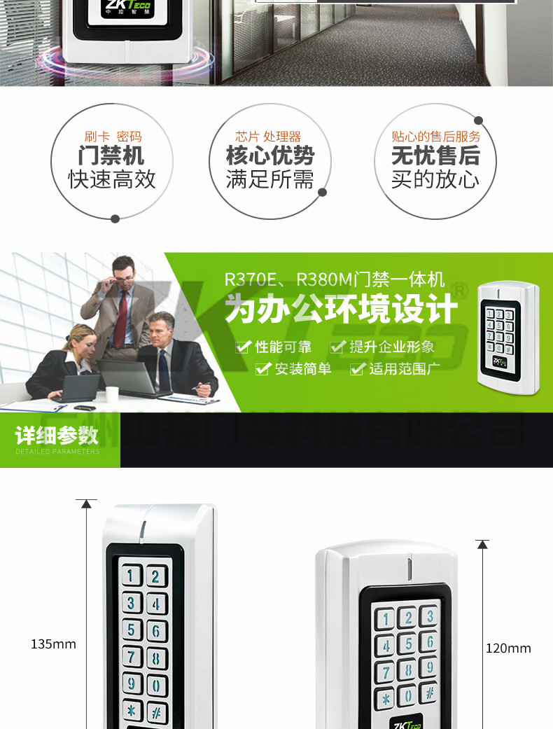 金屬刷卡門禁一體機(jī)R370/R380支持支持常規(guī)非接觸式ID卡、IC卡,二代證以及HID iclasss卡等,是目前比較先進(jìn)的單門門禁控制器之一。采用獨(dú)特的金屬外殼設(shè)計,靈巧的鍵盤面板操作,內(nèi)置高檔微處理器,抗干擾能力強(qiáng),安全性和可靠性極高,可為1000個用戶提供強(qiáng)大的安全保障。具有超低功耗、夜光鍵盤、獨(dú)立密碼、韋根輸出、輸出短路保護(hù)、門磁報警、防拆報警、開門按鈕、門鈴接口、安全級別設(shè)置等強(qiáng)大功能,使用非常方便,可廣泛應(yīng)用于家庭、辦公室、住宅等。
