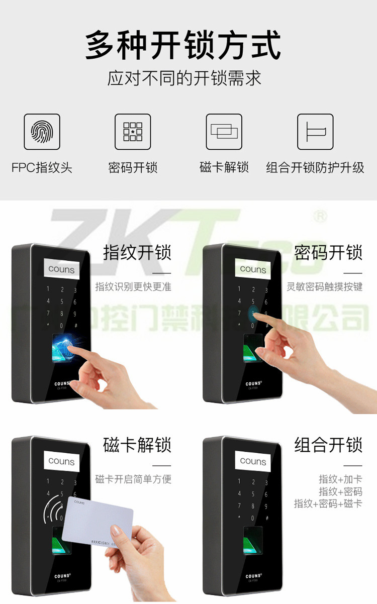 * 支持指紋、指紋+卡、指紋+密碼、刷卡、密碼開(kāi)門(mén)方式