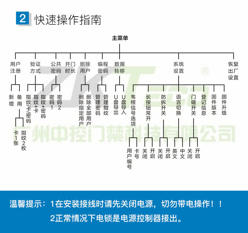 * 存儲(chǔ)容量500枚指紋用戶、500張用戶卡,2組開(kāi)門(mén)密碼