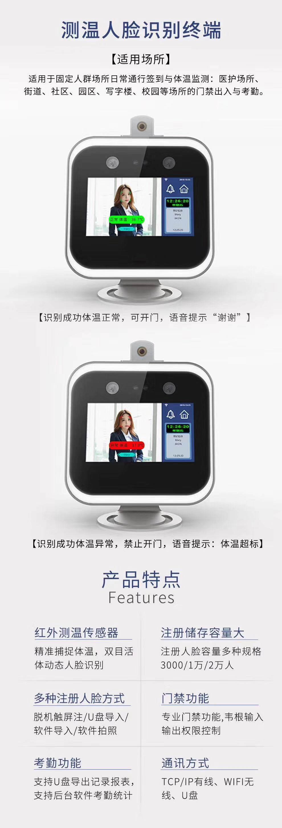 測(cè)體溫人臉識(shí)別門(mén)禁考勤機(jī)
