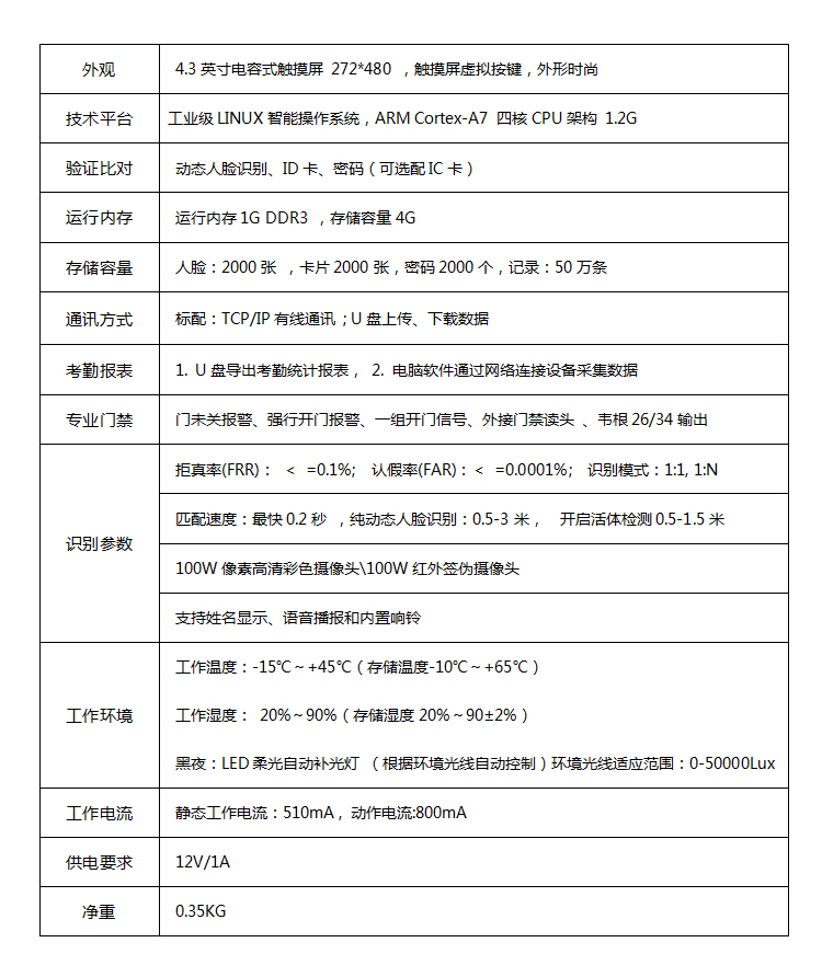 動(dòng)態(tài)人臉識(shí)別考勤門(mén)禁 面部簽到打卡機(jī)