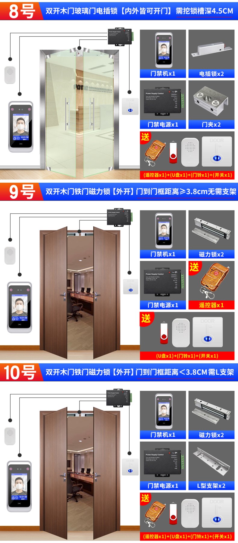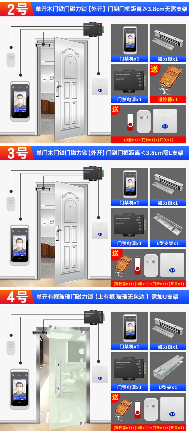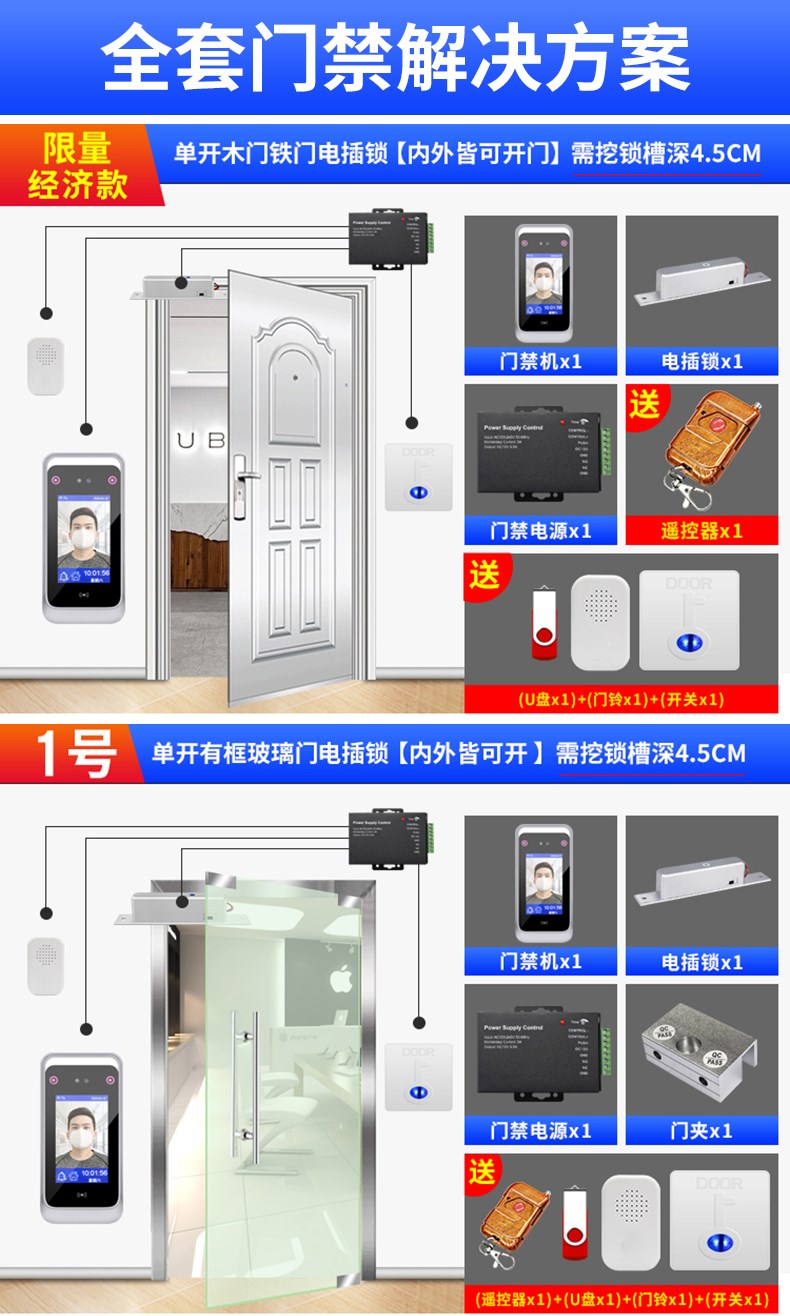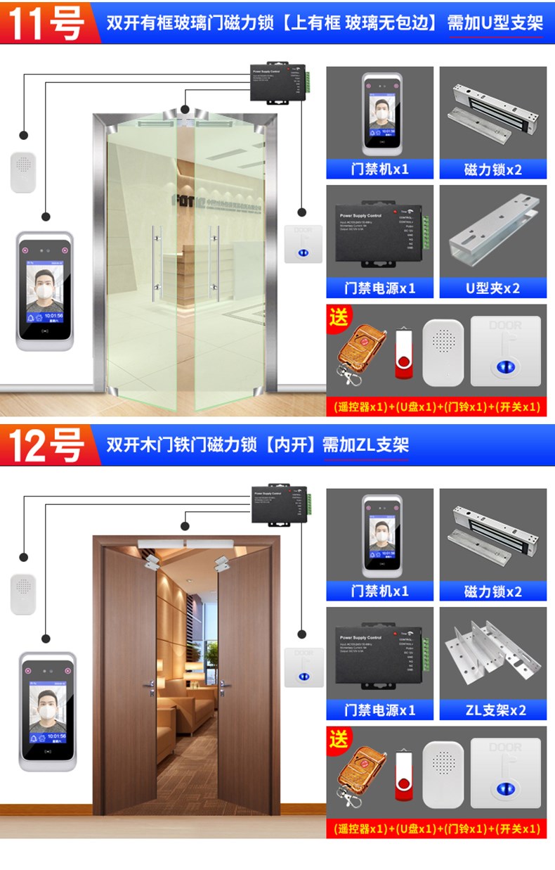動(dòng)態(tài)人臉識(shí)別考勤門(mén)禁一體機(jī) 面部簽到打卡機(jī) 門(mén)禁系統(tǒng)套裝辦公室木門(mén)鐵門(mén)玻璃門(mén)磁力鎖電插鎖